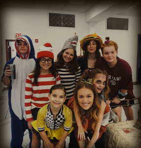 Maria (Maddie Shea Baldwin) and the Von Trapp children dressed up for a Halloween rehearsal